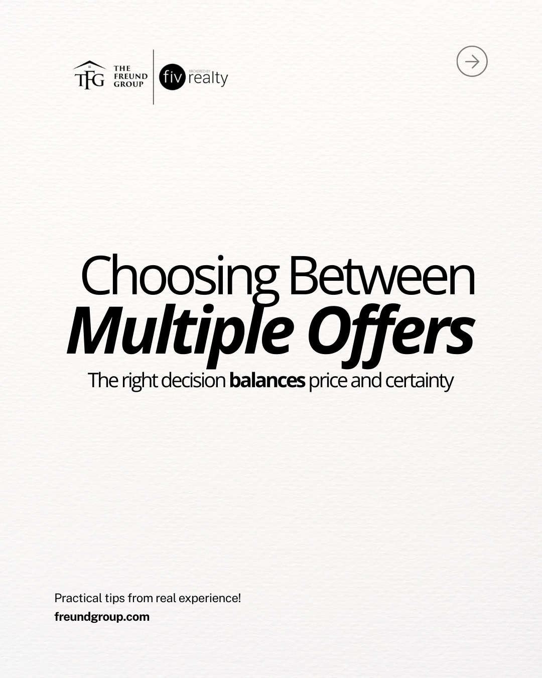 In competitive situations, sellers may choose to negotiate with one or more buyers. The Freund Group guides clients through these decisions while keeping negotiations professional and organized.